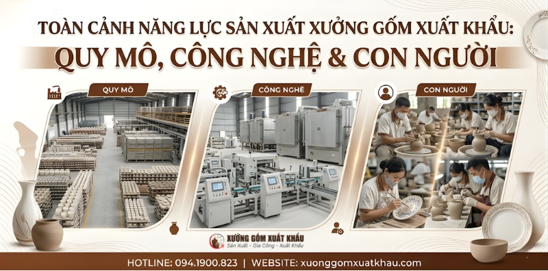 Với những bằng chứng cụ thể về quy mô nhà xưởng, công nghệ, đội ngũ nhân sự và hệ thống kiểm soát chất lượng, Xưởng Gốm Xuất Khẩu đã chứng minh được năng lực toàn diện của mình. Việc lựa chọn chúng tôi làm đối tác đồng nghĩa với việc bạn có một chuỗi cung ứng gốm sứ ổn định, chất lượng cao và luôn đảm bảo đúng tiến độ.