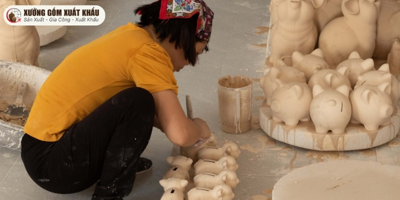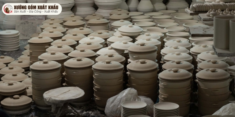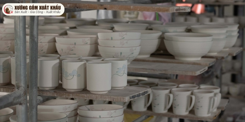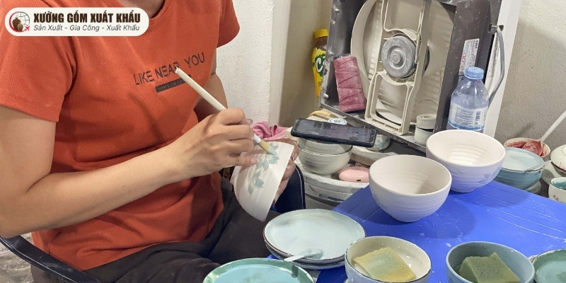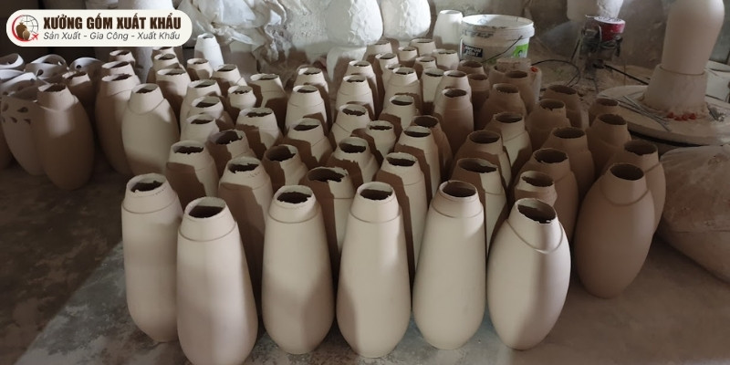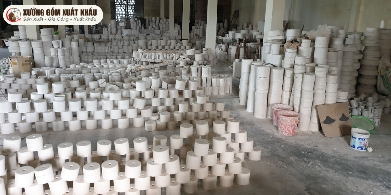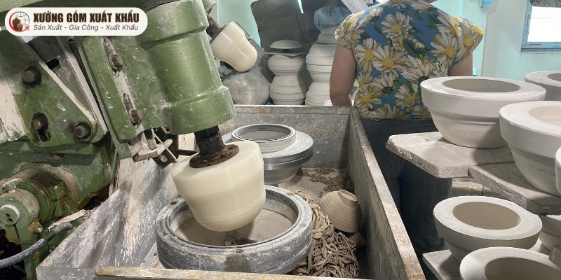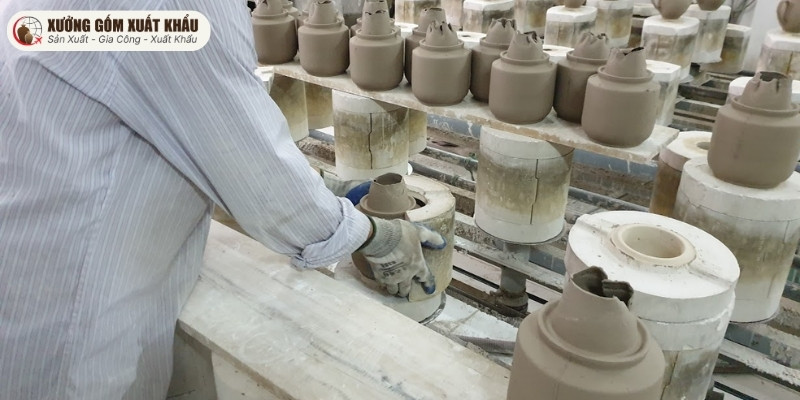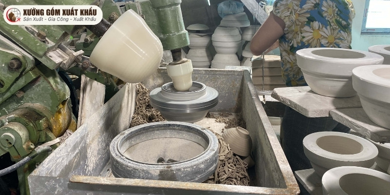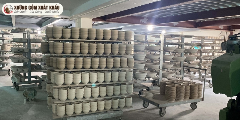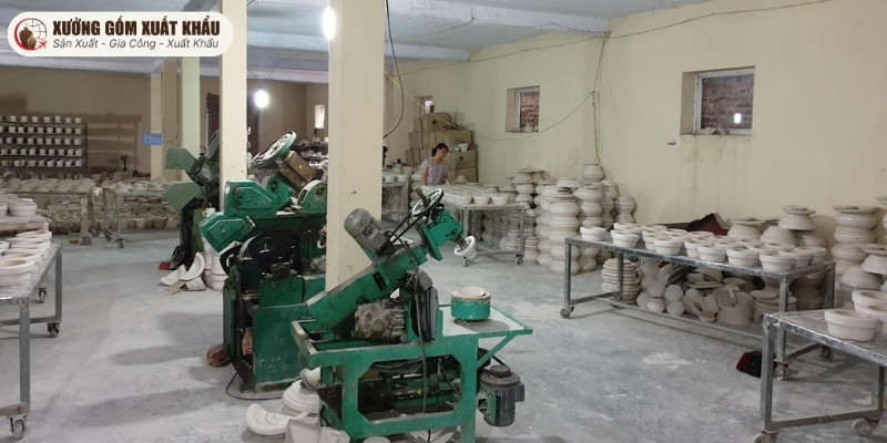 Xưởng Gốm Xuất Khẩu kết hợp hài hòa giữa kỹ thuật thủ công truyền thống và máy móc công nghệ cao để tối ưu hiệu suất và đảm bảo độ đồng đều cho các đơn hàng số lượng lớn.