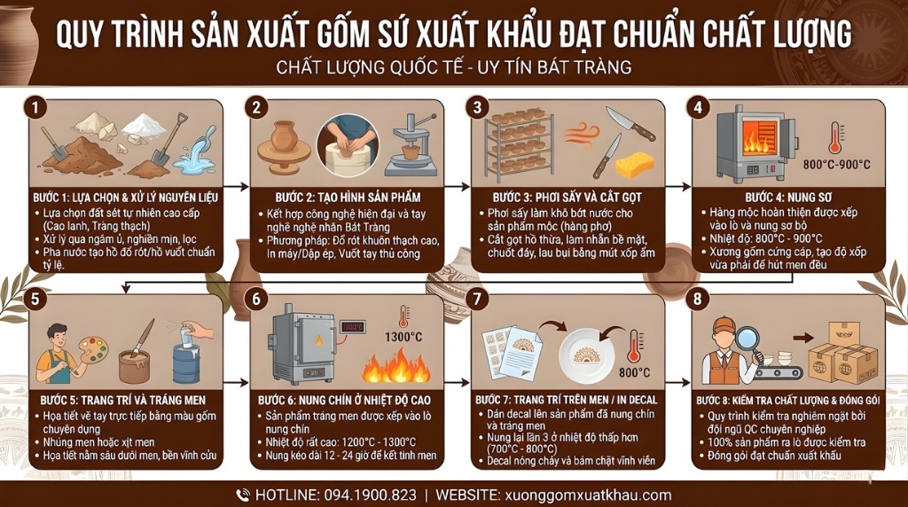 Quy trình sản xuất gốm sứ xuất khẩu đạt chuẩn chất lượng