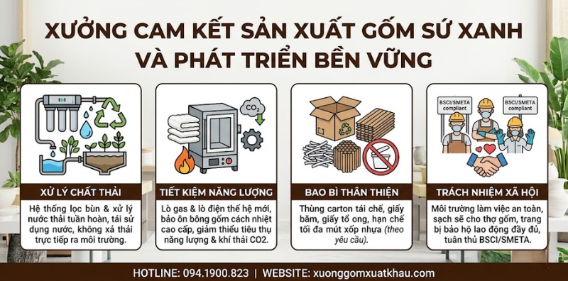 Xưởng cam kết sản xuất gốm sứ xanh và phát triển bền vững
