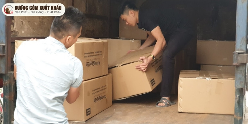 Sản phẩm đạt chuẩn sẽ được đóng gói theo tiêu chuẩn xuất khẩu. Tùy yêu cầu, sản phẩm được xếp vào hộp riêng, sau đó đóng vào thùng carton 5 lớp chống sốc có vách ngăn. Cuối cùng, các thùng hàng được xếp lên pallet gỗ đã qua hun trùng khử mối mọt, quấn màng PE và sẵn sàng cho việc xuất container. Bạn có thể tìm hiểu thêm về quy chuẩn đóng gói tại xưởng tại bài viết này Giải Pháp Đóng Gói Gốm Sứ Xuất Khẩu An Toàn, Tối Ưu Chi Phí