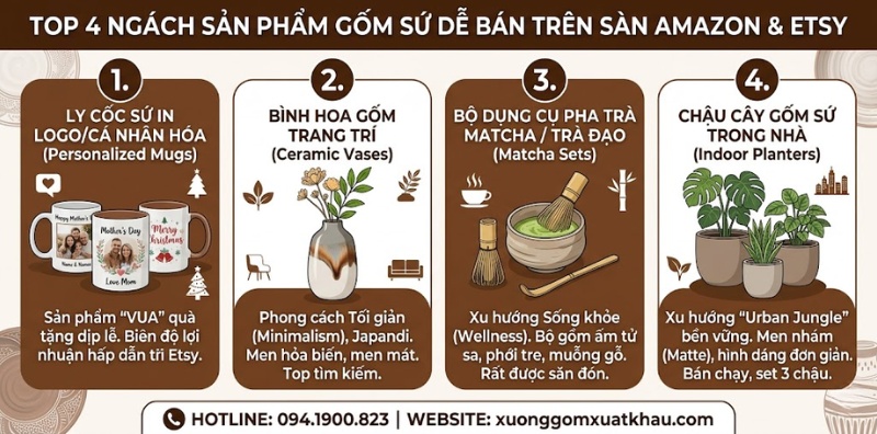 Top 4 ngách sản phẩm gốm sứ dễ bán trên Amazon & Etsy năm 2026