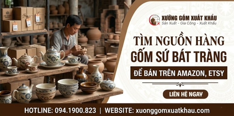 Hãy để Xưởng Gốm Xuất Khẩu đồng hành cùng bạn trên hành trình chinh phục thị trường quốc tế. Liên hệ với chúng tôi ngay hôm nay để nhận tư vấn chi tiết về sản xuất và tìm nguồn hàng gốm sứ Bát Tràng chuyên nghiệp cho Amazon và Etsy ngay nhé!